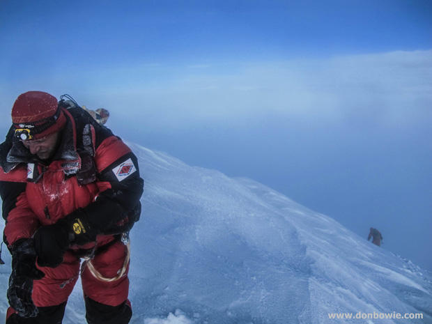 Don: During my ultra-cycling/running events I have come to understand a unique kind of suffering due to the maintained physical output required. High altitude climbing requires a slightly less intense level of physical output but stretches it out over 3 or 4 days (or more)- and all that time you haven't slept, you're extremely dehydrated due to a max intake of 2-3 liters of fluids per day, you can't eat much due to constant nausea, and you feel light-headed and utterly exhausted due to lack of oxygen. Meanwhile your physical body is actually dying with every hour you spend above 6500 meters, and the arctic temperatures feel even colder due to hypoxia induced shunting and vaso-constriction in your fingers, toes, and extremities in order to keep your vital organs oxygenated enough to stay alive. Plus, you must keep a clear and calm disposition despite the constant threat of objective dangers like rock falls, avalanches, hurricane force winds, huge crevasses, and steep slopes that need be navigated without mistake- or you die. If by chance something were to go wrong there is no rescue – you are totally on your own- because helicopters can't fly that high, and even if by some extremely remote chance someone were able find your location, you'd likely die from exposure before they arrived.