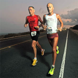 In addition to the main players, Gourley brings many other members of the Ultraman family to life, especially the mobile support crews – a throwback to the early years of Ironman – who serve as tacticians, massage artists, fast-food and water dispensers, pace runners, psychologists and triage medics. He devotes in depth portraits of Ultraman staff including Sheryl Cobb and her husband Dave and also Canadian race director [and now rival ultra promoter] Steve Brown. He offers vivid looks at Ironman professional Hillary Biscay, three-time Ultraman winner and full time nurse Amber Monforte, Brazilian six-time champion Alexandre Ribeiro, long-time Ultraman characters Cory Foulk and Cowman, as well as remarkable 58-year-old Kurt Madden, who was right in the mix in the 2013 race, 30 years after winning the very first Ultraman. Best of all, Gourley gives equal play to the modestly gifted athletes and their dramatic physical and emotional struggles to fulfill their Ultraman dreams. After all, Curtis Tyler's hard earned vision was not about conquering the Ultraman, but about sharing the simpler graces.