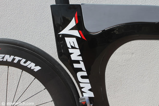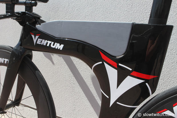 The new Ventum brand has been hotly discussed and a few snap shots appeared on the web, but we now have images of the Ventum prototype of Leanda Cave. The folks behind the Ventum brand told us that the bike is about 95% done, but they are still working on fine tuning some details. The structural external water reservoir is not yet where they want it to be, and the fork featured here is one of many they have used for testing purposes. We also have a thread in our forum where you can ask questions about the Ventum. But now let us look closer at this Lotus homage bike.