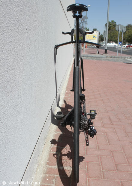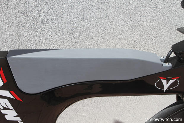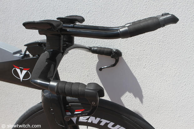 The seat cluster of the Ventum with a tape marking of the preferred seat height of the 4 time Triathlon World Champion.