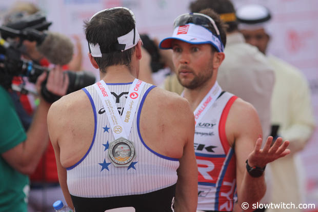 Andy: My honest opinion is, we have this $1,000.000 prize and we are in a different part of the world. We have this Dubai Sports Council putting on this event and I think it was really confusing for them if the first person who crossed the line did not win. So I think they then went to see how they could salvage the situation, and tried to see if they could measure intent, and that is where it got grey. Because non of us 5 who cut the course intended to do so. When the ruling came down that it would be a time penalty instead of a disqualification, they measured the distance we cut off and tried to account for that time. They did not want to blow up any possible future relations of hosting a triathlon in that part of the world, because of the rules. They did not want to leave a sour taste in the mouths of the folks there, because of, this is goofy, I don’t understand why the first guy did not win.