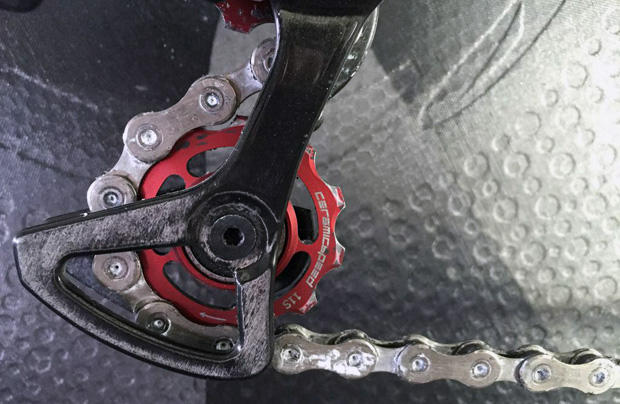 Up close with the CeramicSpeed pulley wheels of Martin Jensen.