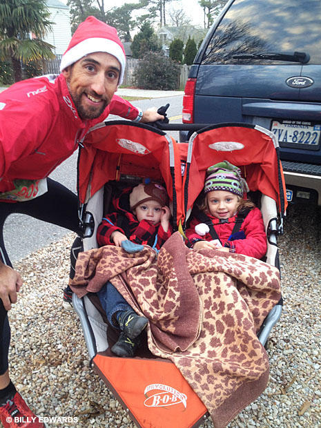 Billy: I brought on about a half dozen new athletes to coach this winter and, along with the Navy team and being the primary care-giver of our two kids, training for Ultraman was the last item on my to-do list. I got in some long rides on the trainer and took a trip to southern California where I won a 50k trail race in the morning and pushed my kids in a double-bob stroller for a Santa Run through Christmas lights at night putting in another 8 cruisey miles.