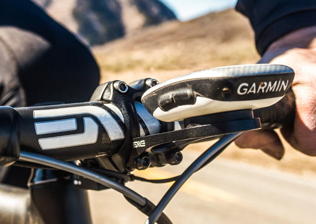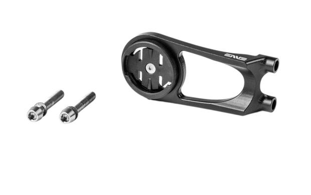 ENVE introduced several new products yesterday and among them we discovered this very clever computer mount that was designed to match up with the ENVE road stem. At first glance I thought that the mount is part of the stem cap, but it obviously is a separate unit that gets attached to the stem with longer bolts. It is reversible and can either be mounted high or low, but I personally prefer the lower more aero looking position. It is compatible with the Garmin 200, 500, 510, 800, 810, 1000, Touring and Touring Plus and weighs 26 grams. It is not yet on the ENVE site, but likely will be there soon.