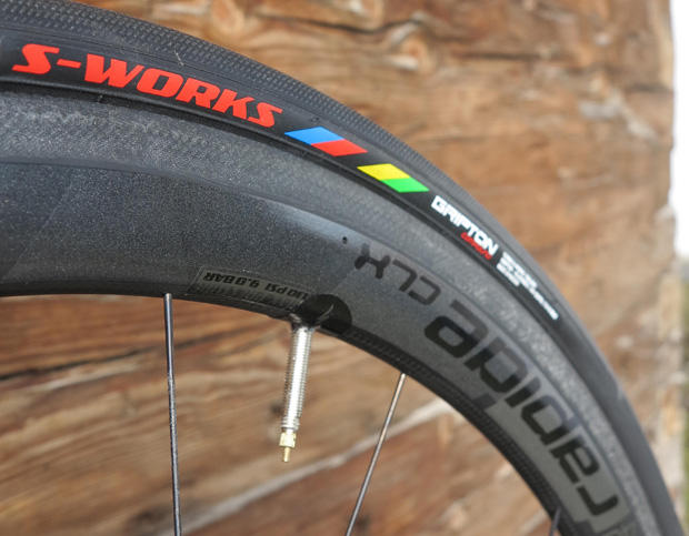 26mm S-Works Turbo Gripton tires front and back on Roval Rapide 40mm carbon wheels.