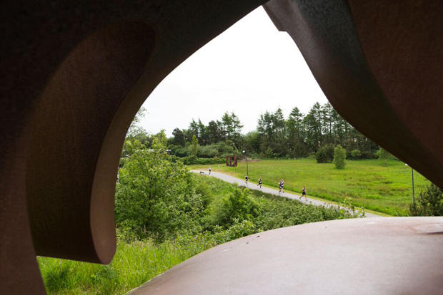 Henrik Hyldelund leads a string of athletes across the Danish countryside.