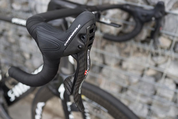 The Astana Team rides on Campagnolo Super Record 11 components.