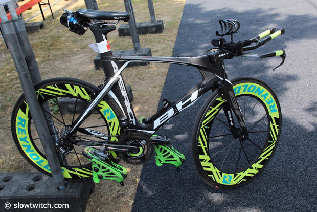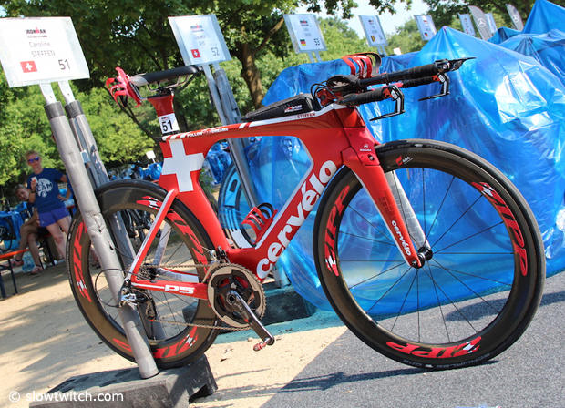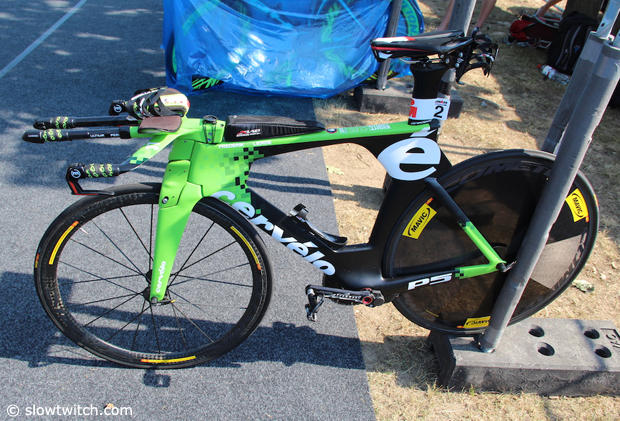 The distinctive custom painted Cervelo P5 of the 2013 Ironman World Champion.