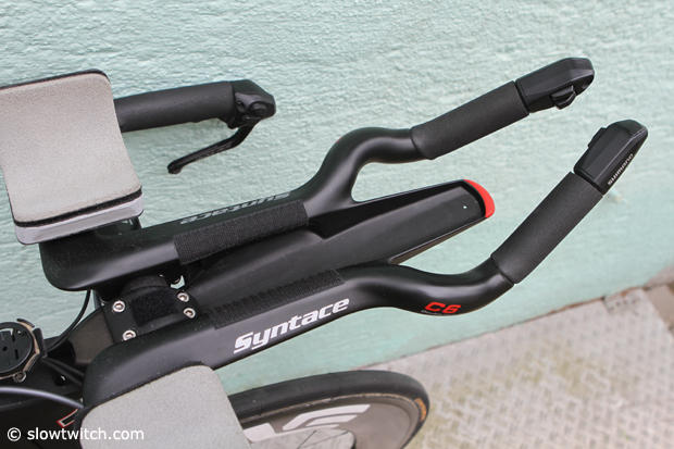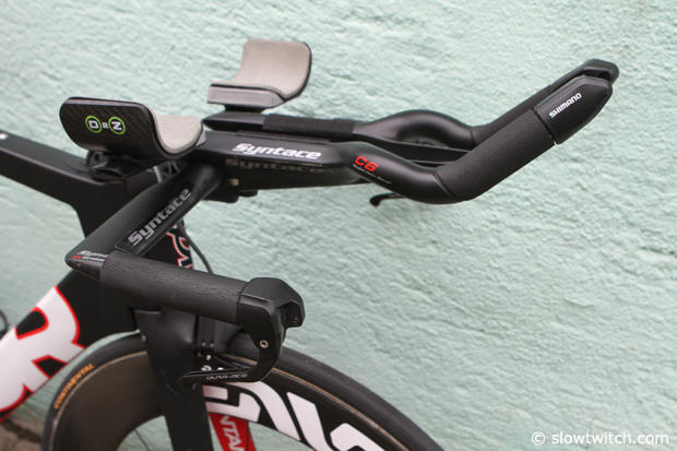 Syntace, once a household name in triathlon, is now a very rare sight. Bracht uses their base bars and the C6 extensions.