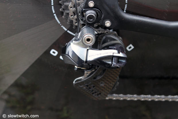 A Berner cage and pulley wheels on the Shimano Dura-Ace Di2 rear derailleur.