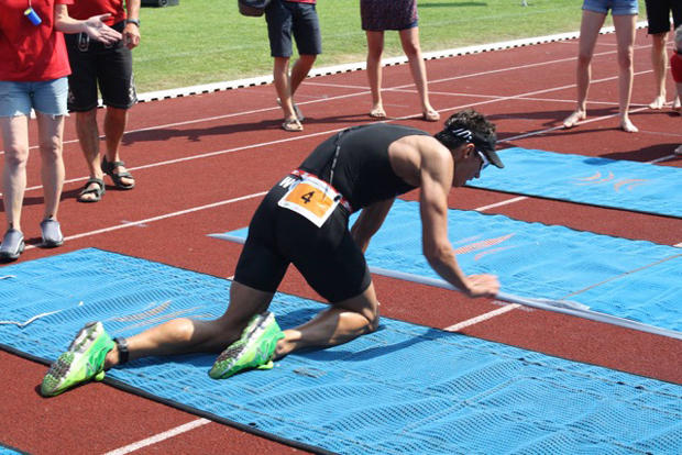 “I only know that I crawled and rolled to the finish. Six meters before the finish I got terrible cramps that no longer allowed me to stand. It was a very scary feeling I have to say,” said Lukasz Wojt. “As I laid there, the cheerleaders came. I was pretty much delirious, but knew that picking me up made no sense, as I knew I would fall down again. I even said to them to not do it. They then righted me up, and a step later I fell down again. I then decided to crawl alone to the finish.”