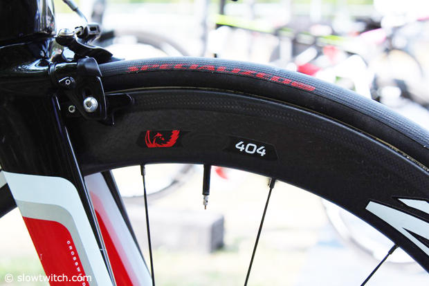Pedersen paired a Zipp 404 with a Specialized Turbo tire in the front.