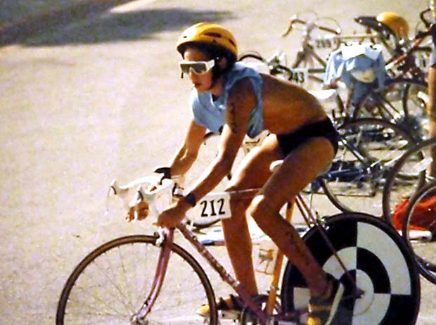 TJ: The suit was made by Nike, and it was a loaned to me by my friend and training partner Nick Radkewich. I used it because the rule was that the chest must be covered by the mount line of the bike. We knew there would be no wetsuits, and I didn't have a top that would roll down into my Speedo, so I went that route. Guess I was an early adopter of what's become the norm, and I didn't even realize it.