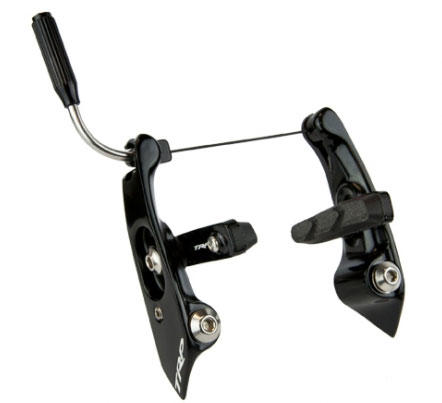 I've included an image of the way these TRP linear-pull brake calipers work, and how they'll look on the bike, because the studio shots of the E-117 are from the drive side. You can't see the other side, and I don't have an image of the other side. That elbow guiding the cable that you see allows the bike a fighting chance of keeping the cable close to the frame. Are these hard to adjust? Not really. You can see the 2mm (+/-) Allen screws controlling the tension on each side, and a barrel adjuster, so you should be fine with these.