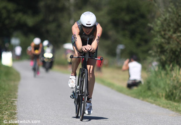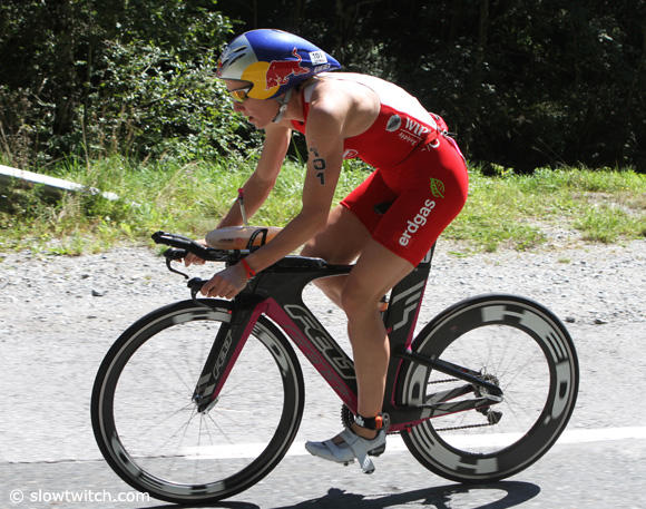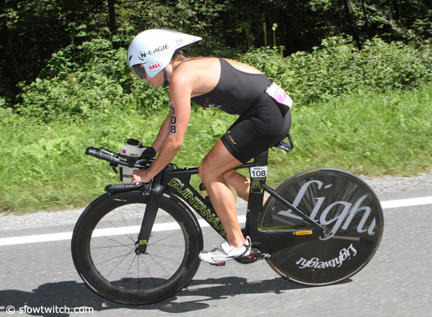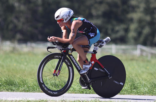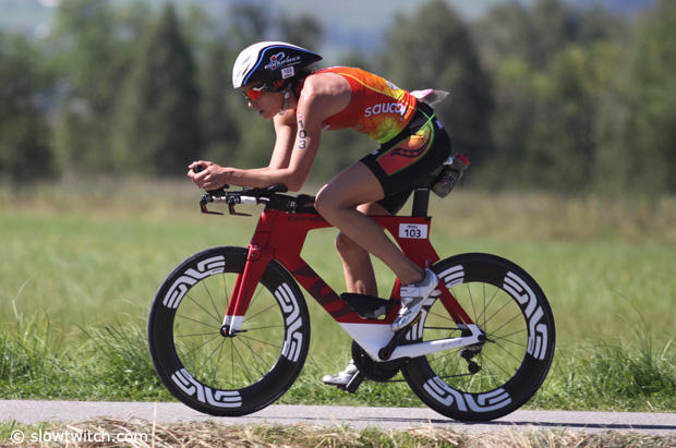 Anja Beranek was riding in second place not far behind race leader Daniela Ryf, but after the halfway point of the bike segment Ryf pulled away from all competitors.