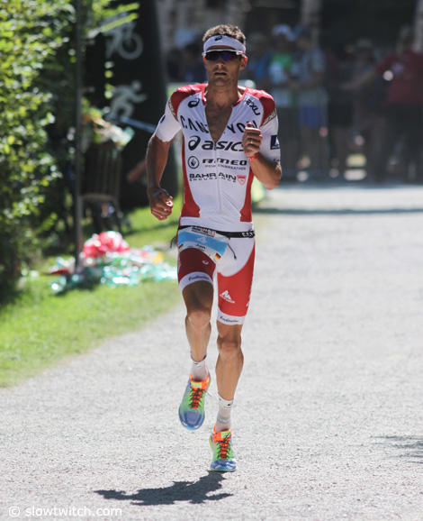 Jan Frodeno caught Andreas Böcherer late on the bike to move into second place on the road.