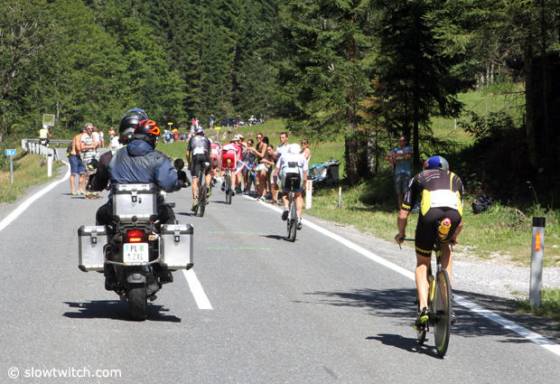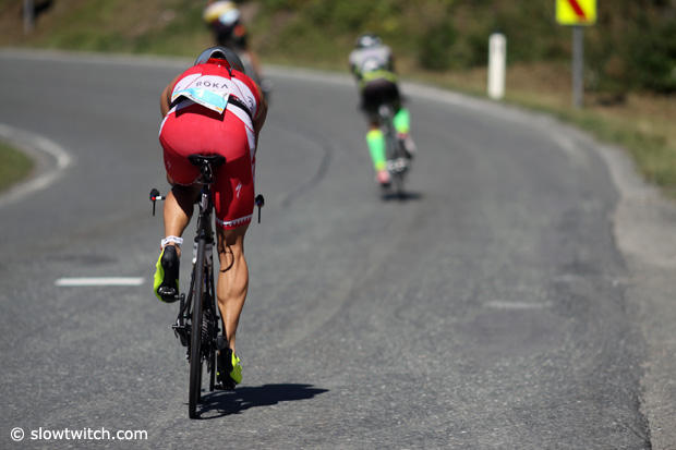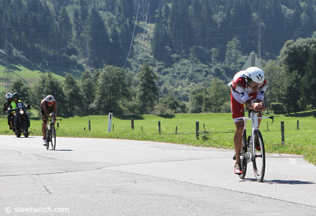 On the long climb 2014 Ironman World Champion Sebastian Kienle looked like he was suffering too, but he paced himself well.