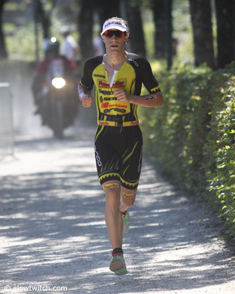 Javier Gomez was chasing hard but could not match Sebastian Kienle's run speed, and neither could Jan Frodeno.