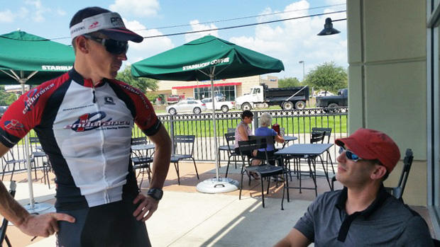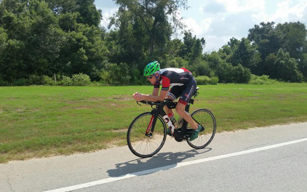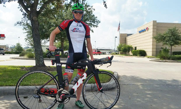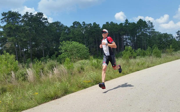 On this day, a two hour ride followed by a 30 minute run was in order. He starts his ride near the 15-mile mark of the Ironman Texas bike course.