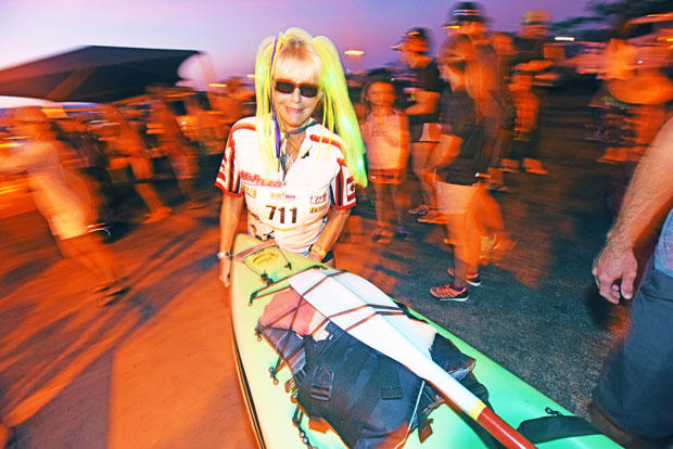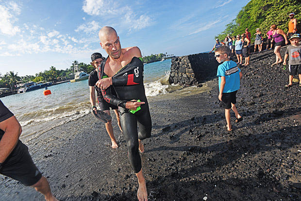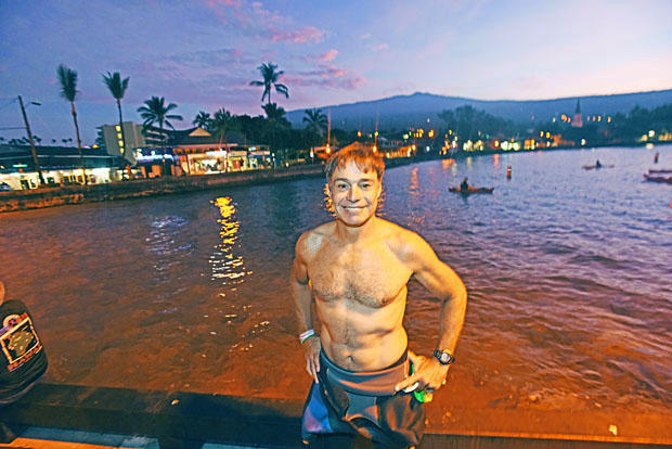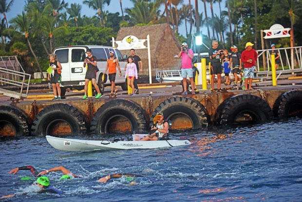 The 31st Ultraman World Championship begins its 3-day triathletic circumnavigation of the Big Island of Hawaii with kayaker guides leading an ocean swim 10 kilometers south from Kailua Pier. The 40 aerobic enthusiasts continue their Day 1 pilgrimage with a 90-mile bike leg that features nearly 8,000 feet of climbing. This year’s jaunt included spots of hard rain and concluded with a 4,000 foot climb into a stiff headwind.