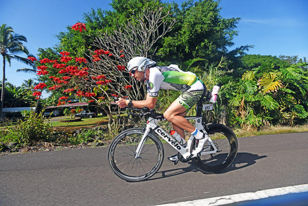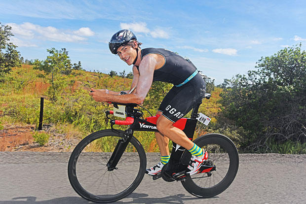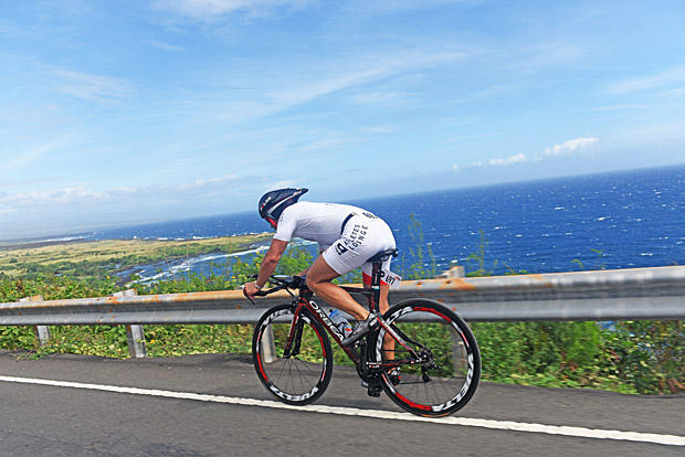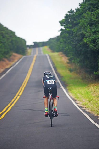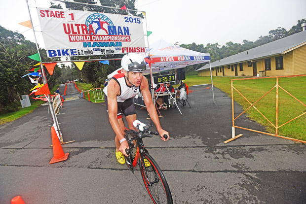 Peter Hudson of Victoria, Australia rides the Ultraman Day 1 bike course.