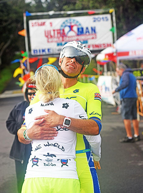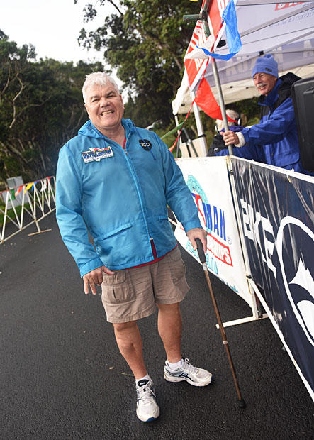 Ultraman co-founder Curtis Tyler helps out at the finish.