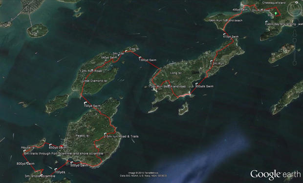 Consisting of multiple alternating swim and overland running legs (island roads, trails, and shoreline scrambles) between 8 islands in Portland’s spectacular Casco Bay, this adventure will test competitors with run legs across nearly 10 miles of varied island terrain and a combined 4 miles of open water swimming.