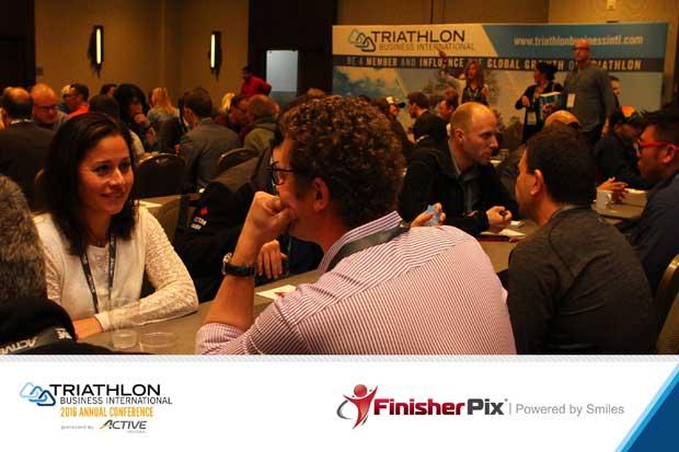 This conference is not simply the place where honors are bestowed, but where education and discussion takes place. As is usual, the prime benefit of this conference is in networking. As a personal aside Slowtwitch typically does more fruitful business here even than at Interbike, Kona, or any other gathering where networking is the goal, because of rather than in spite of this industry gathering numbering just a few hundred rather than tends of thousands. What you see in the image below is speed networking, which is a TBI Conference staple and sets the tone for the conference.