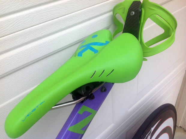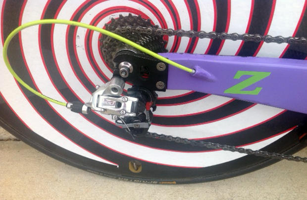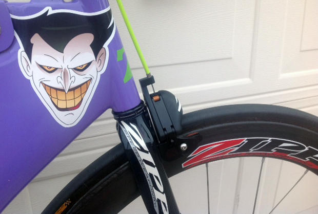 Kevin Grogan of Gear for Multisport in Clermont likes bikes and he recently built up a Zipp 2001 and made this early aero frame fit his personal taste and humor. Grogan got this 1992 model with its original lavender paint in December of 2015, built it up with selected components and has already done a couple smaller events on it. He refers to the bike as The Joker and who are we to disagree with him? It is a size L with a size L beam.