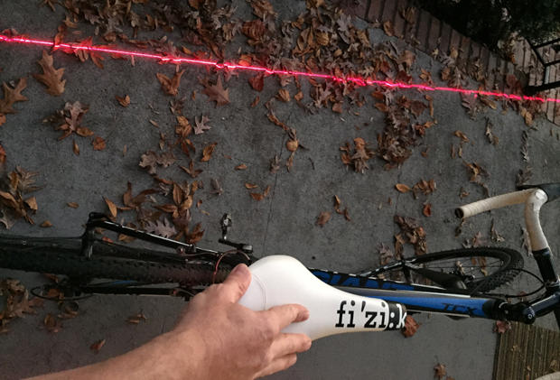 In addition to a very bright 2 watt LED light with 5 different modes, the NiteRider Sentinel 40 projects 2 laser lines on the ground. These FDA compliant lasers either sit nicely to the left and the right of the bike and give the cyclist a virtual lane. Depending on where you mount the light this virtual bike lane is shifted more forward or backward.