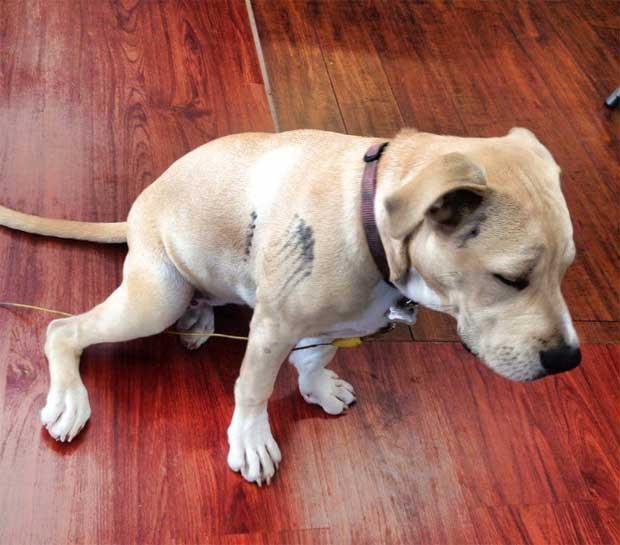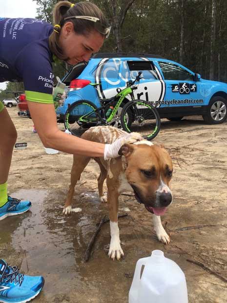 I love this dog! This is half-yellow-lab, half-pit-bull Lola at 18 months. This shelter dog rescued South Lake Bike & Tri (Minneola, FL) owner Brett Schaeffer. Notice Lola's CAT 5 tattoo.