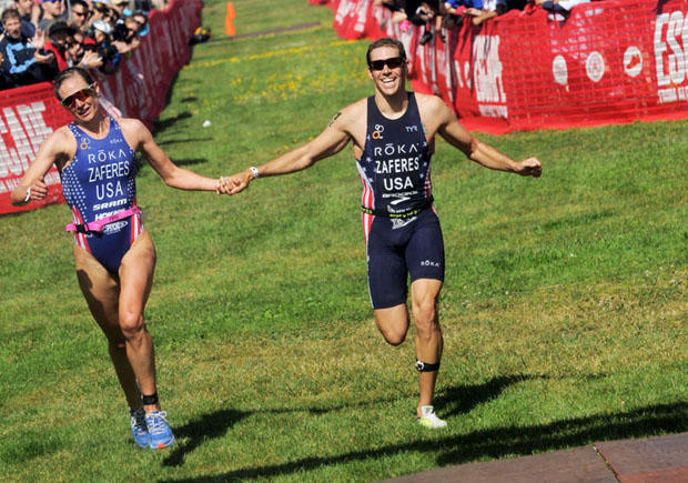 Tommy Zaferes (12th male pro) finished holding hands with his wife Katie (2nd female pro).