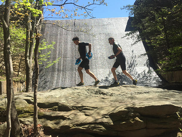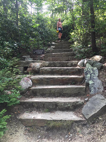 Race director Jan Kriska and well experienced SwimRun athlete Marcus Barton get to enjoy the view during a recon run of the SwimRun NC course. But what goes up, must come down.