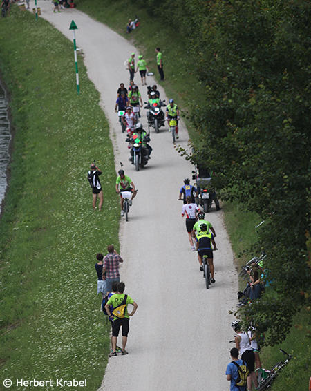 At one point of the race the 2 leading pros crossed paths on the fire road next to the Europakanal.