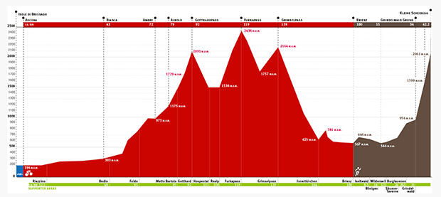 The Gotthard Pass is the first tough climb that has to be navigated, and it is followed by the Furkapass and the Grimselpass.