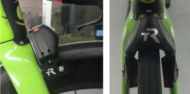 As noted, this is not a fully integrated solution for rim brakes as may be seen on some models. However, the two braking setups are similar in their level of integration. Furthermore, this style of rim brake configuration remains common on many TT and triathlon bikes and does not restrict the results to proprietary components. This configuration is also the same as that used by Cannondale athletes at the Ironman World Championships in Kona this year.