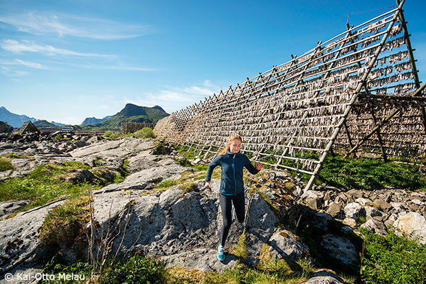 Another great running image by Kai-Otto Melau this time featuring Ane Ottemo Gärtner in front of some fish racks in Lofoten, Norway.