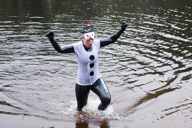 Colting briefs all those brave or stupid enough to run and swim in the near freezing temperatures.