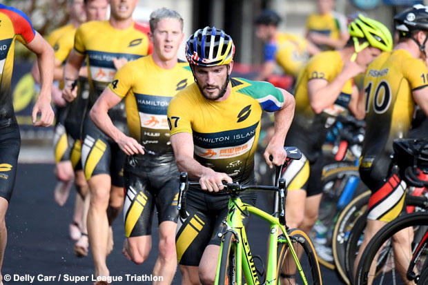 After Day 1 and Day 2 wins, Richard Murray took third place in the Day 3 Eliminator format and thus captured the $100,000 check for the overall title at the Super League Triathlon at Hamilton Island, Australia.