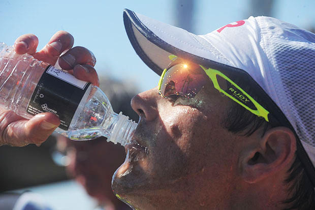 Jan Frodeno led the field until 15 miles into the bike leg when a flat tire derailed his chances. After losing 15 minutes to reinflate, the German rode the rest of the way before hanging it up for the day.