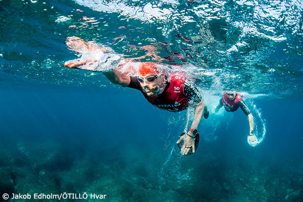 A beautiful underwater study of Pontus Lindberg (SWE) and George Bjälkemo (SWE) of Team Garmin in action during the race.