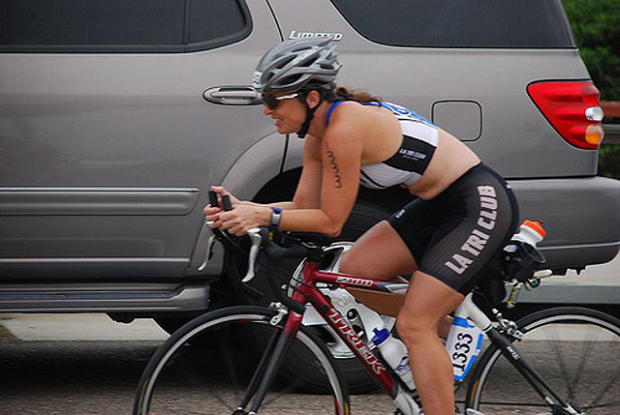 Brand new to triathlon, I bought a Trek WSD road bike from Helens Cycles in 2005 (replacing my Trek hybrid shown below, with grip shifters, which I rode wearing my old Reebok aerobic shoes). I didn’t really know how to ride my new Trek WSD and I had just discovered the L.A. Tri Club. I emailed its head coach Ian Murray and asked if he had time to teach me how not to fall off. “I'd love to help and I know a visit here would make a huge difference. Come for a fit and we'll do some basic instruction on clipping in and out, shifting, cadence, braking, etc.”