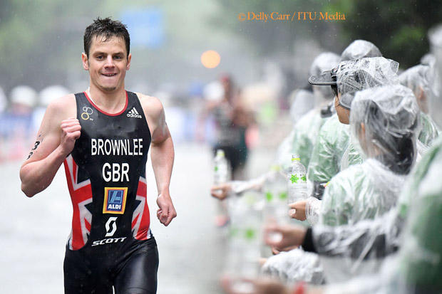 As the pack approached T2, top contender Brownlee crashed in the wet, picked up his bike and ran it into T2. Out of contention for the win, Brownlee soldiered on to a 32:34 run to earn an honorable 42nd place finish.