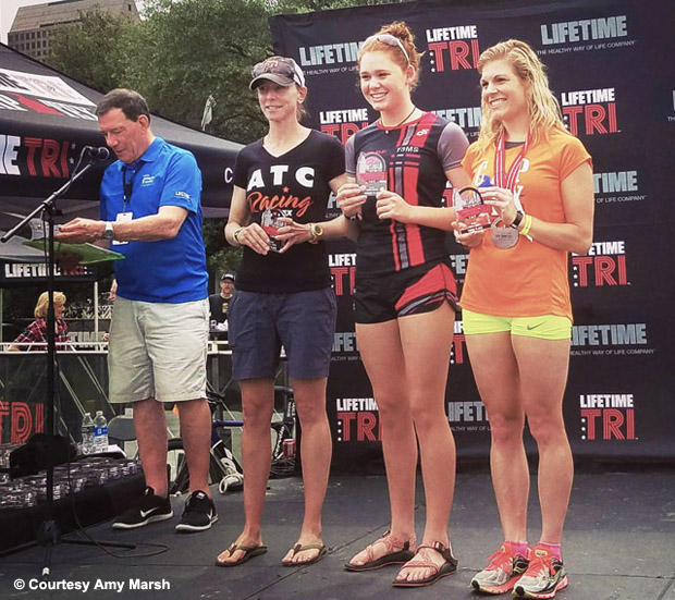It wasn't like the finish line celebration and the checks for her four professional Ironman victories. But Amy Marsh’s Memorial Day overall women’s age group win at the Life Time Tri CapTex Triathlon sprint might have carried more meaning.