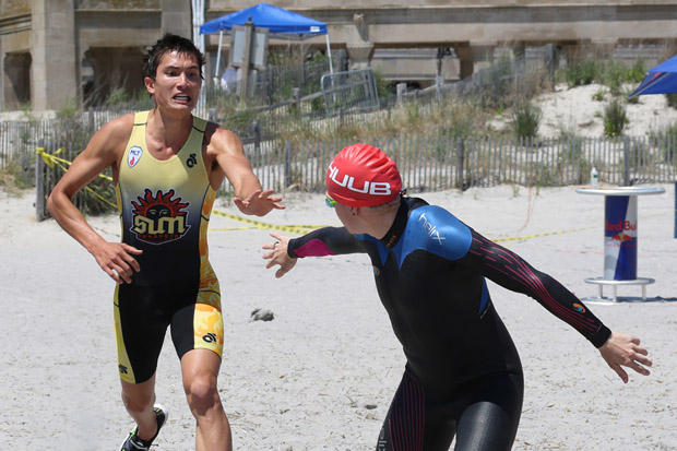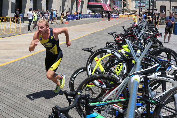 AJ Baucco (Cleveland Rock and Roll) entered T1 with a healthy lead.