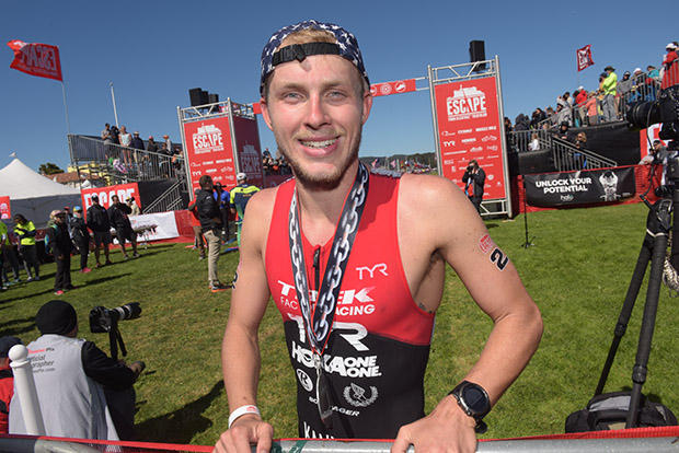 U.S. Olympian Ben Kanute combined a race-best 43:45 bike split and 5th-fastest 45:38 run to win the first Escape From Alcatraz with a canceled swim.