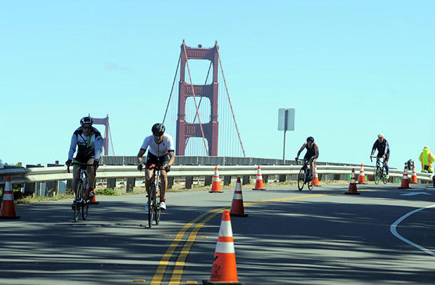 With the iconic swim from Alcatraz to the Marina canceled due to high winds and resultant small craft warnings, the 37th running of this classic triathlon soldiered on. Two thousand competitors scrambled back to the Marina start via buses to regroup, removing their wetsuits and preparing for an 8:30 AM time trial start. The pros started individually at 30-seconds intervals and groups of age groupers every 10 seconds. Superb swimmers lost their ace in the hole but gave it their best on the 18-mile bike leg and 8-mile run. At the finish, first time winners Ben Kanute and Lauren Goss exulted and everyone left with dreams of a classic Escape From Alcatraz swim next year.