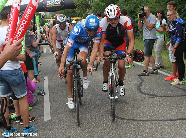 Maurice Clavel led the pro men’s swim in 44:49 which gave him a 3:42 lead on fellow German Sean Donnelly, 3:44 on Nils Frommhold of Germany, 3:46 on Brad Kahlefeldt of Australia, 3:47 on Terenzo Bozzone of New Zealand, 3:53 on Timo Bracht of Germany, 3:54 on Henry Beck of Germany, and 4:06 on Per Bittner of Germany.