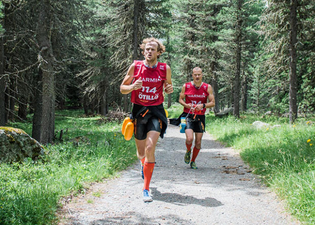 The mixed team of Daniel Hanssen and Kristin Larsson is already well up on the narrow hiking trail that goes 230 meters in elevation and is technically very challenging.