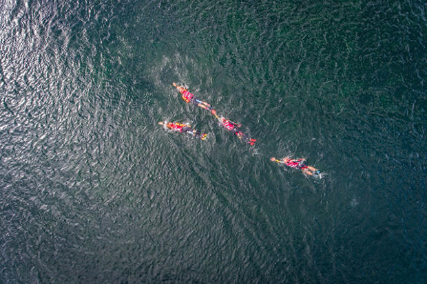 There are very few sighting buoys in the water in Swimrun races. The lead team swimmer really has to pay attention and look out.